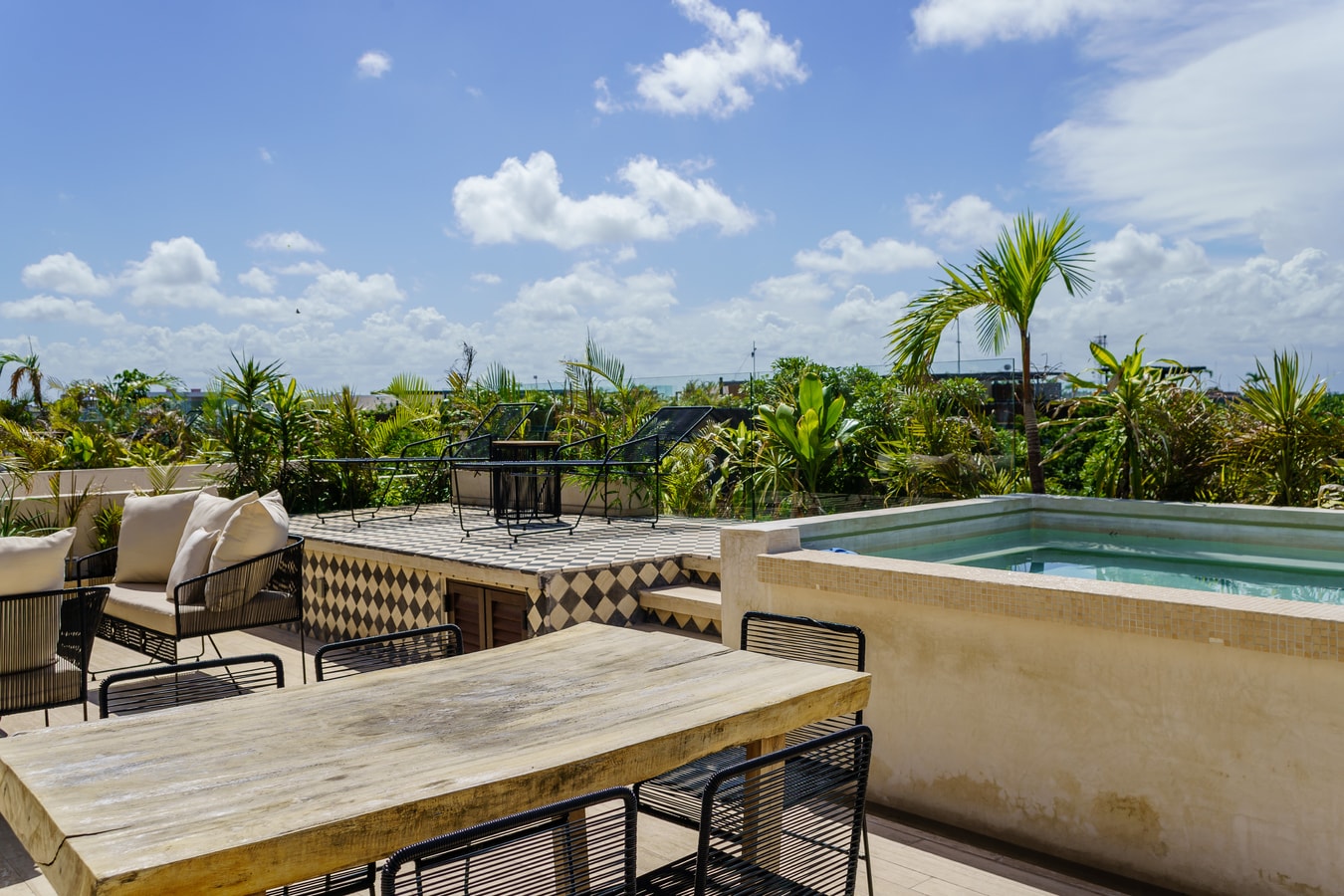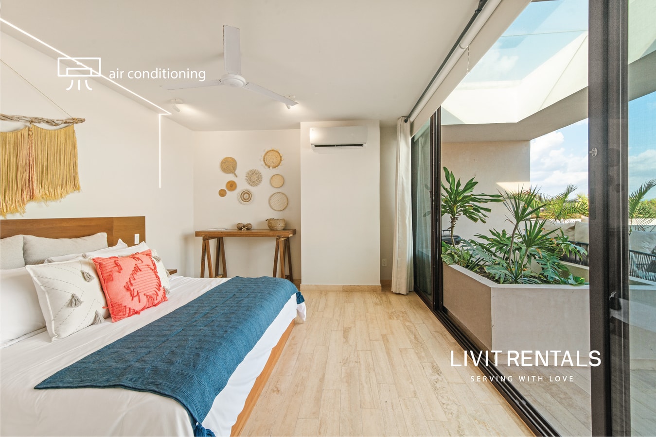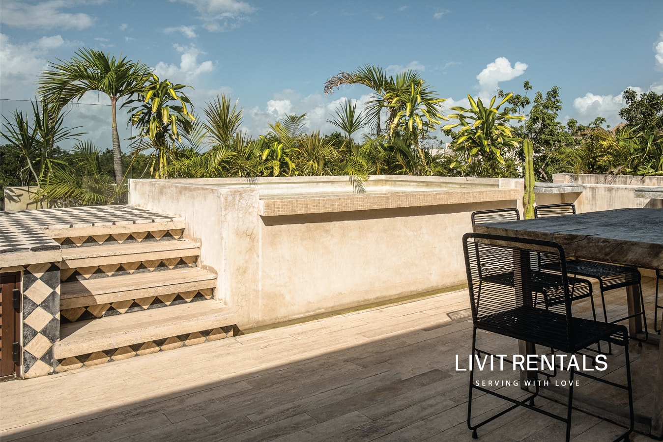 view 3 bedroom PENTHOUSE with 270 square mts/2.900 square ft, located in the Heart of Tulum, Aldea Zama. Approx. 15 mins away from the Beach & Hotel Zone .Four double beds and one king bed with room for 10 people