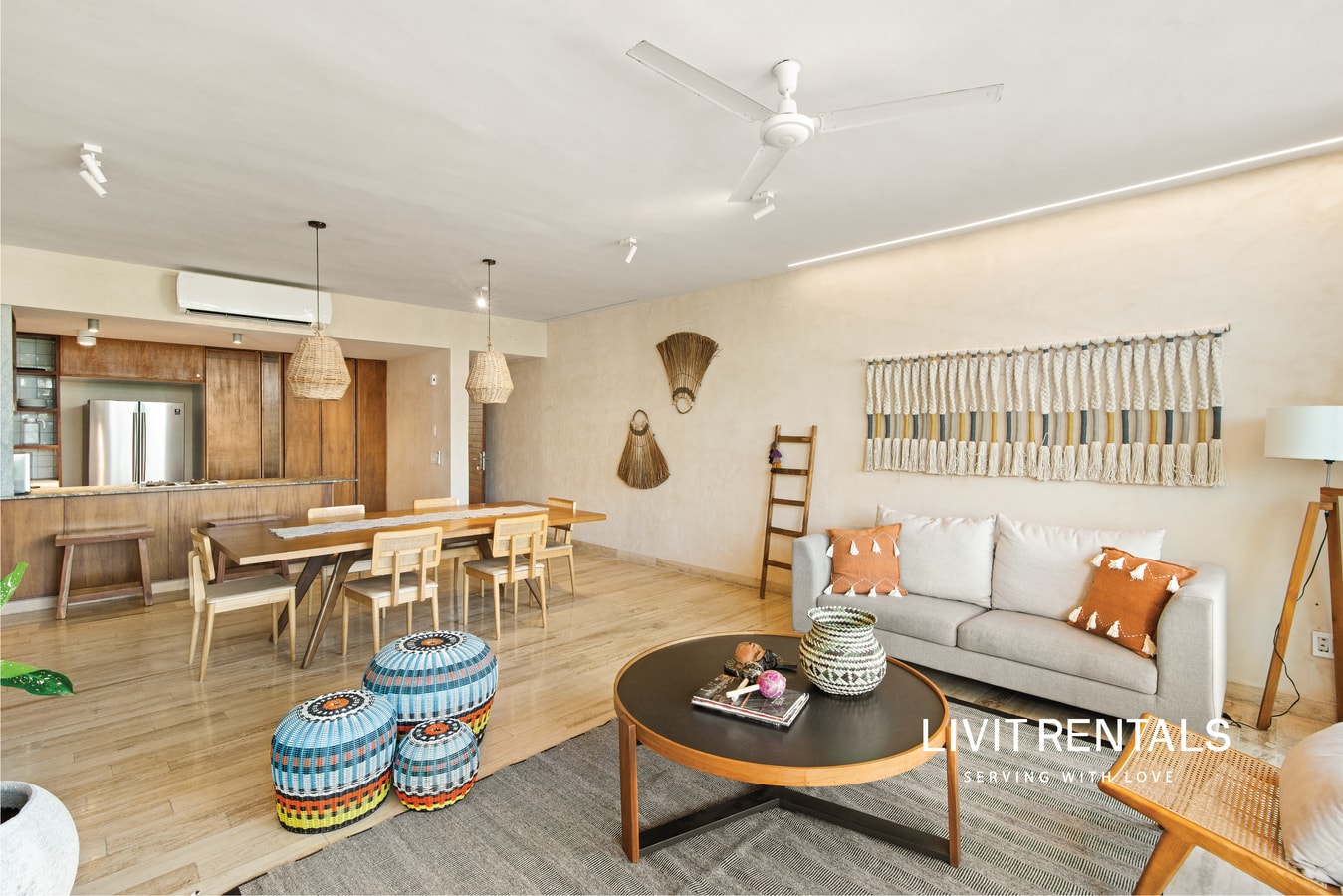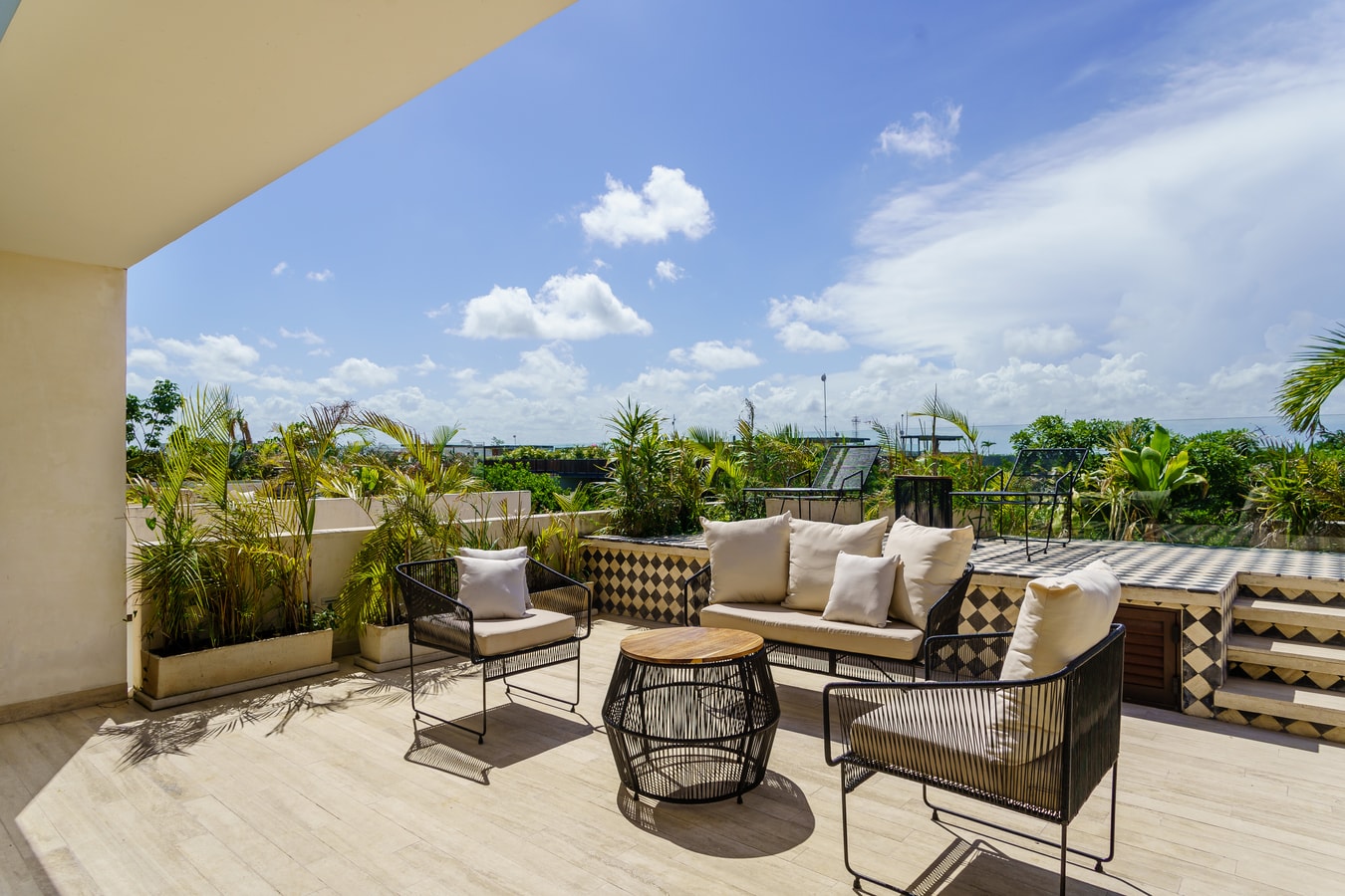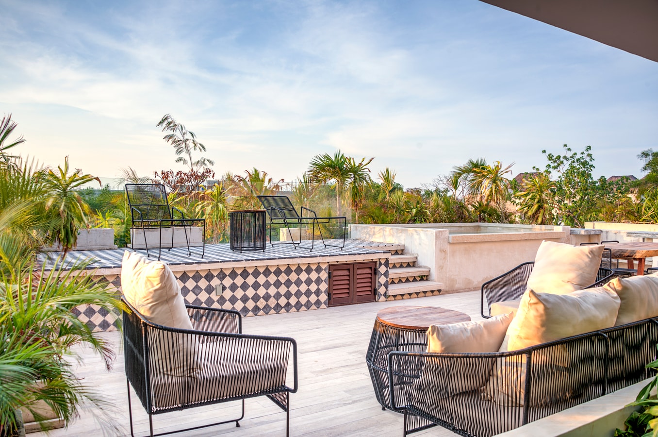 view 3 bedroom PENTHOUSE with 270 square mts/2.900 square ft, located in the Heart of Tulum, Aldea Zama. Approx. 15 mins away from the Beach & Hotel Zone .Four double beds and one king bed with room for 10 people