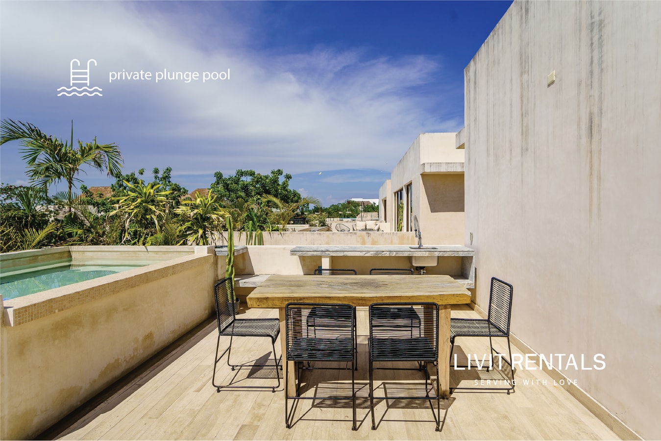 ★ Private Rooftop: Master bedroom, bathroom, terrace and plug pool.