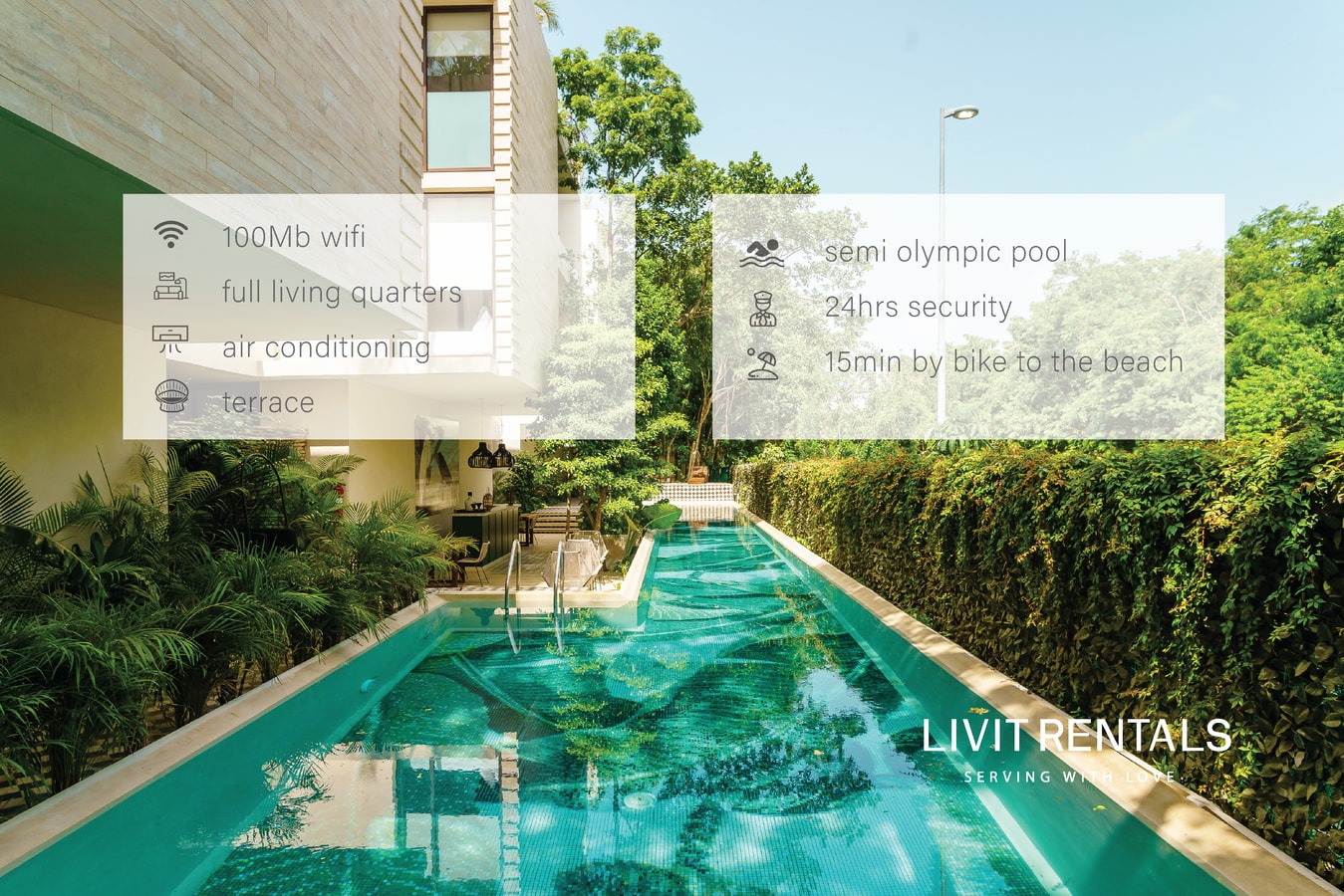 Great house, very clean and organised and in a nice, safe part of Tulum (Aldea Zama). The patio and the plunge pool is an amazing place to hangout and we fully took advantage of that. There is also a larger pool on the ground floor which is very nice and a good place to meet other people living in the building. Lourdes is very good at communicating with her guests and very flexible. Would come back again!